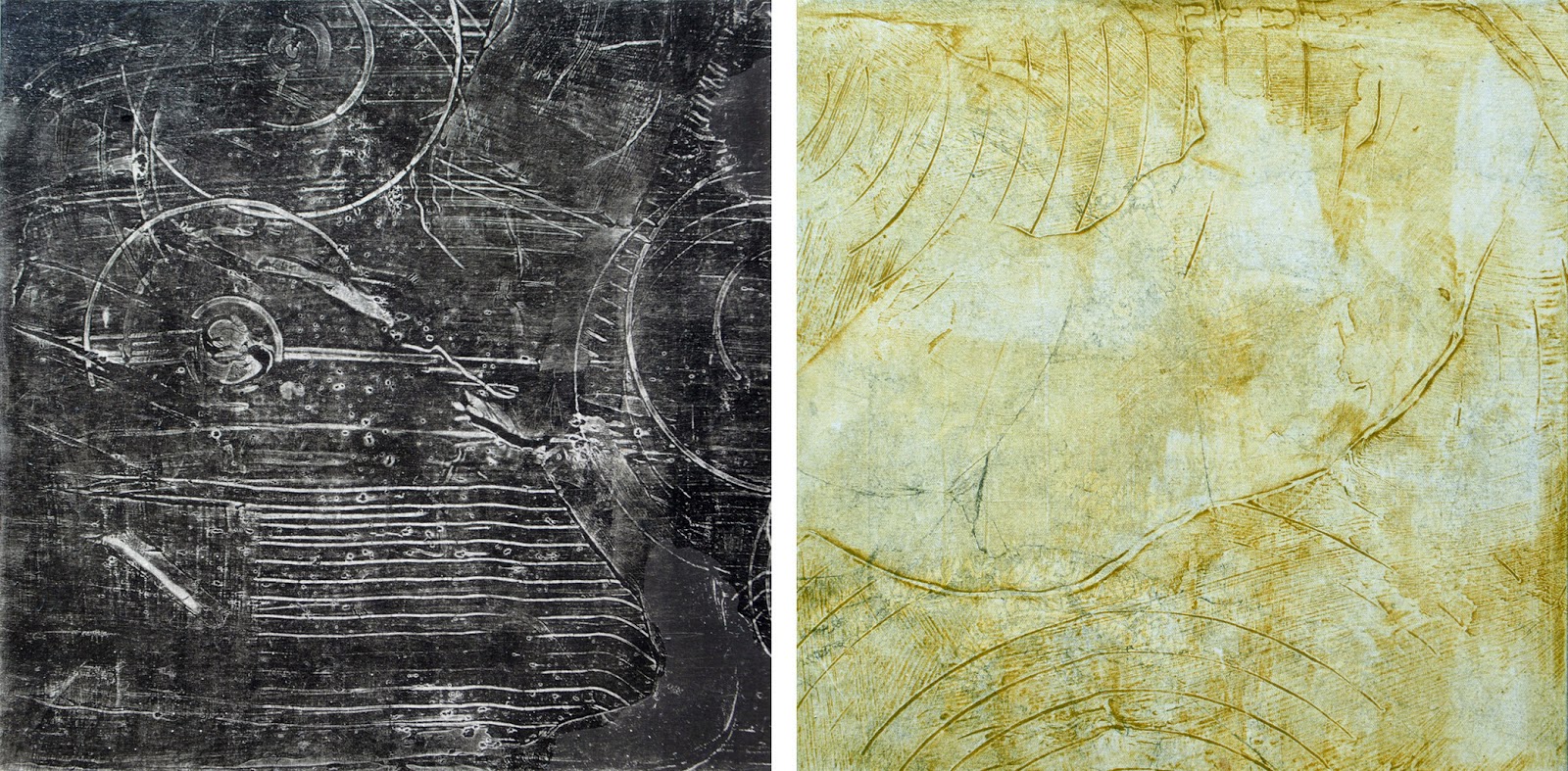 My goal is to reflect my love of landscape and to evoke the feeling of elements found in nature. I paint in oils and acrylic, but concentrate primarily on printmaking processes, but not in a purist sense. I rarely produce multiples or editions, preferring instead to create unique, one of a kind images using several printmaking techniques; collagraph, intaglio, monoprint, or a combination of all of those. I use unconventional tools and methods, and employ anything and everything I can lay my hands on to record my vision.